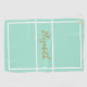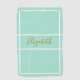 This pretty mint green and white personalised ladies golf towel has minimalist solid colour blocks and a gold editable name for the lady golfer in your life. Give one to your mum, sister, or anyone else who you want to give a little present that relates to their hobby, or get one for yourself. Cute and useful, too!