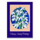 A pretty January Birthday Card, with a bunch of snowdrops (the January birth month flower) on a royal blue background, surrounded by a pale pink and deep blue border, from a watercolour painting by Judy Adamson. Please feel free to change the inside message if you wish.