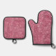 Pretty Sparkle Pink Faux Glitter Oven Mitt & Pot Holder Set