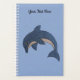 This planner is light blue with a pretty sparkling dark blue and white jumping dolphin with a black and white swirl eye on the front and back. Customise your text at the top on the front with the template.