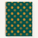 Pretty jade green notebook with gold circle pattern. Great deep green notebook for school, home and work.