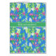 A pretty Birthday Card, with the greeting in Portuguese and a pattern of creamy white Mock Orange Blossom and bright pink Weigela on a bright blue background. The design is from a hand-painted watercolour by Judy Adamson. The inside is left blank for you to add your own message.