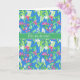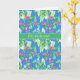A pretty Mother's Day Card, with the greeting in Portuguese and a pattern of creamy white Mock Orange Blossom and bright pink Weigela on a bright blue background. The design is from a hand-painted watercolour by Judy Adamson. The inside is left blank for you to add your own message.