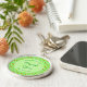 There is a pale green circle with white marbled patterns on it which contains customisable text so you can include all the important details.
