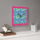 A very pretty, square Wall Clock, with a pattern of creamy white Mock Orange Blossom and bright pink Weigela on a sky blue background, from a handpainted watercolour design by Judy Adamson. This clock has a bright pink border but other colours are also available.