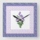 A pretty square Wall Clock with a motif of Violets, one of the February Birth Month Flowers, from a watercolour painting by Judy Adamson, bordered by a matching ditsy Violets Pattern and Polka Dots. Part of the Posh & Painterly 'Sweet Violets' collection.
