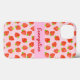 This girly phone case for foodies or lovers of fruit has a strawberry pattern that's done with a gradient / watercolor effect. The strawberries rest on a light pink mottled background. There's a pink banner in a slightly darker shade that stretches across the middle of the case, where you can add your name in pretty red cursive. If you love strawberries, this is the beautiful case for you.
