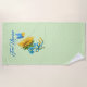 Show your support for the people of Ukraine with this pretty beach towel featuring watercolor sunflower and butterfly in colours of Ukraine flag on pastel green and white polka dot background. Free Ukraine text in elegant script font