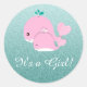 Teal sparkling Faux glitter It's A Girl Whale Baby Shower Favour Seal Sticker