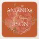 Pretty Terracotta Rust Floral Cute Wedding Party Square Paper Coaster