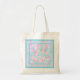 A very pretty Budget Tote Bag, with a mix'n'match pattern of pink roses on a sky blue background, dotted with white butterflies: from a handpainted watercolour design by Judy Adamson.