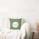 A pretty monogram square throw pillow with a treetop green circles pattern with stylish hearts in them. Personalise by adding your name and monogrammed initial to the trendy circle frame. Part of the Treetop Hearts Bedroom Decor Summer Colour Collection.