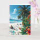 A pretty tropical greeting card to say hi to a family member or friend. This has a beautiful beach scene with palm trees, tropical flowers, blue water and pottery washing up to the shore. Say hi and wish someone a beautiful day!