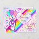 Personalise these adorable girl's birthday party invitations with a magical unicorn, hearts, bows, balloons, sprinkles, butterfly and rainbow. Pink, purple, blue, yellow and orange girl's birthday.