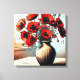 Vase of flowers. Red poppies in a white vase sitting on a table. Pretty comic book style cartoon Poppies.