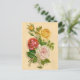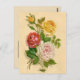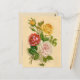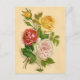 An elegant postcard with a reproduction vintage illustration of a bouquet of flowers, including yellow, pink and white roses. A pretty and nostalgic floral postcard.