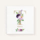 Pretty Violet Floral Gold Foil Letter T Monogram Notebook