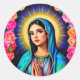 Pretty Virgin Mary with Prayer Hands & Roses Classic Round Sticker