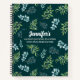 Cute watercolor floral design with a dark green background on a fun, personalized flexible soft covered garden, home or project/planning journal.