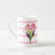 Pretty pink and white striped bone china mug, with small green polka dots and beautiful watercolor flower bouquets. Personalise the green text for yourself or as a lovely gift idea for her.