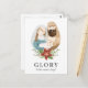 This beautiful Christian Christmas postcard features a watercolor painted Mary, Joseph, and Baby Jesus nativity scene, along with a poinsettia floral design. The front of the card reads, "Glory to the Newborn King," but the text can be customised, if desired. Text templates are included on the back for a greeting and names. For product or design enquiries, please reach out to me (Tracey) at orabellaprints@outlook.com.