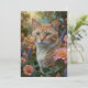 A pretty white and orange cat enjoying a beautiful Summer day surrounded by a charming pastel cottage floral garden.