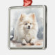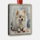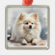 PRETTY WHITE POMERANIAN PUPPY DOG METAL TREE DECORATION