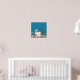 This economical artwork poster has a pretty white rabbit sitting on a grey ground among orange and white flowers on a dark blue background.