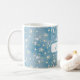 Pretty White Snowberries, Green Leaves on Blue Coffee Mug