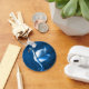 A lovely nature scene of a white swan swimming on a peaceful blue lake. The dark blue shadows contrasts nicely with the soft blue lighting on this peaceful swan.