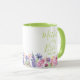 A special gift for the mother of the bride, this pretty colourful mug features a watercolor wildflower garden with "mother of the bride" in an elegant handwritten typography in a soft green that matches the interior and handle. Personalise with your wedding date.