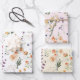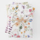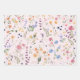 Beautiful boho-inspired wrapping paper sheets featuring cheerful watercolor wildflowers in various shades of blush, pink, lavender, yellow, blue and green.