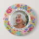 Celebrate a loved family member or friend with this round photograph button featuring a whimsical and bright painterly wild flower pattern on soft shell pink with easily edited text to memorialize a very special person or moment in life.