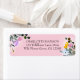 Wildflower return address labels with pretty arrangements of wild flowers in pink lilac blue and yellow. Girly and feminine cottage garden design on a pink background with white haze of watercolor wash.