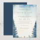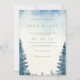 nvite guests to your wedding with this elegant card featuring a tranquil watercolor forest design. Soft blue and sage green tones create a dreamy sky above a border of hand-painted pine trees, framing your event details in classic serif and script fonts. The minimalist layout and nature-inspired palette make this invitation ideal for rustic, woodland, or outdoor celebrations. A refined choice for couples seeking a sophisticated, modern announcement.