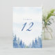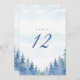 Set the scene for your winter wonderland celebration with this elegant wedding table number card, featuring a picturesque grove of pretty pine trees dusted in soft snow. The enchanting forest design conjures the romance of a frosty woodland wedding, blending rustic winter charm and the timeless beauty of nature’s evergreens. Subtle watercolor blues and greens evoke the serenity of an enchanted pine grove, while refined, easy to read serif typography ensures seamless table organisation.