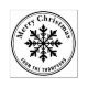 Destei's silhouette design of a decorative snowflake together with two personalizable text areas. The top is ideal for writing a festive message such as "Merry Christmas" while on the bottom text there's space for a custom family name. The design is surrounded by a double round border.