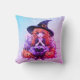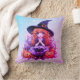 Pretty Witch with Red Curly Hair Purple Halloween Cushion