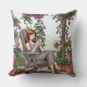 Pretty Woman Drinking Coffee, Her Dog and Plants Cushion
