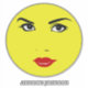 Vinyl sticker with a pretty lady cartoon expression yellow face. Glamourous and chic. Customise it further to change the background colour in the circle. Add your name when you personalise this template. The funny name typography vinyl sticker is 14" x "14 size. Go with the 8" x 8" size or one of the smaller sizes to put on a laptop, water bottles, lunch boxes, luggage, skateboards, car, or anything a vinyl sticker will stick to. For your office, for school or just to have it.