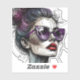 Beautiful lady with purple sunglasses and red lipstick on, Ai art with degenerative lines abstract woman with messy bun