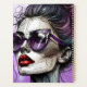 Beautiful lady with purple sunglasses and red lipstick on, Ai art with degenerative lines abstract woman with messy bun.