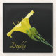 Pretty glass coaster; yellow daylily bloom on black, for a sleek classic look
