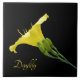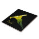 Pretty ceramic tile; yellow daylily bloom on black tile.