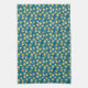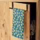 Pretty yellow garden rose patterned kitchen towel on teal blue background. POriginal art from artists own illustrations. Please use the message me button below for help with further customisation and special requests. © Zoe Chapman Design