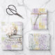 Pretty Yellow Purple Floral Books Clock Birthday Wrapping Paper Sheet
