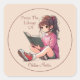 Pretty Young Girl Reading Book Bookplate Square Sticker