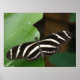 This beautiful poster features a photograph of a beautiful tropical butterfly. This species is called a Zebra Longwing Butterfly (Heliconius charithonia) and is covered in vivid black and white stripes across each wing. It comes from America. The photograph was taken using macro photography for a stunningly detailed result.