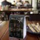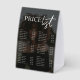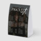 A modern custom photo business paper table tent sign design featuring your business price lists and custom photo. A minimalist business table tent signs. A simple and professional way to allow your customers to view menus, price lists etc. Customize the text and make it your own. Your uploaded photo will be automatically faded in black opaque.