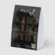 A modern custom photo business paper table tent sign design featuring your business price lists and custom photo. A minimalist business table tent signs. A simple and professional way to allow your customers to view menus, price lists etc. Customize the text and make it your own. Your uploaded photo will be automatically faded in black opaque. Allow your customers to pay or book an appointment via the QR Code.
